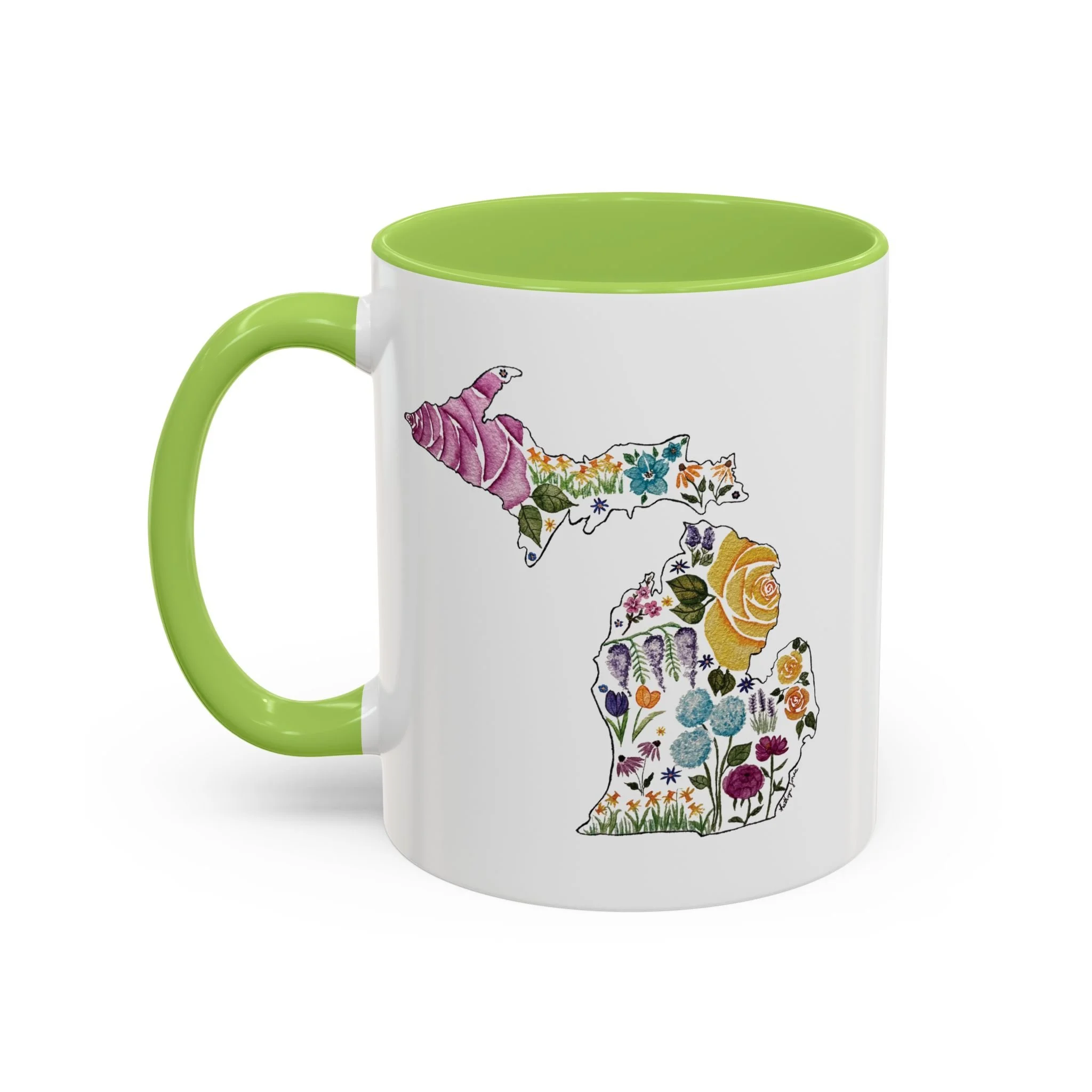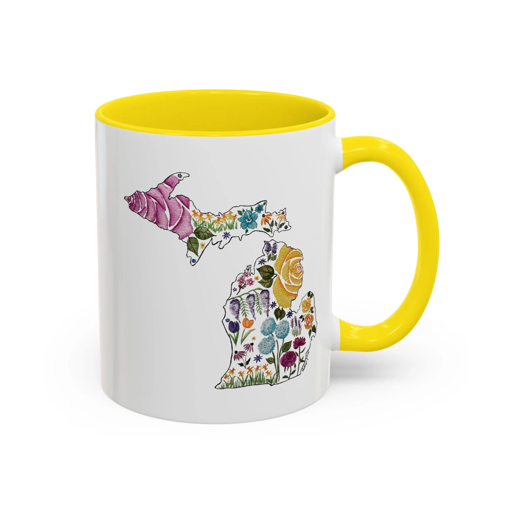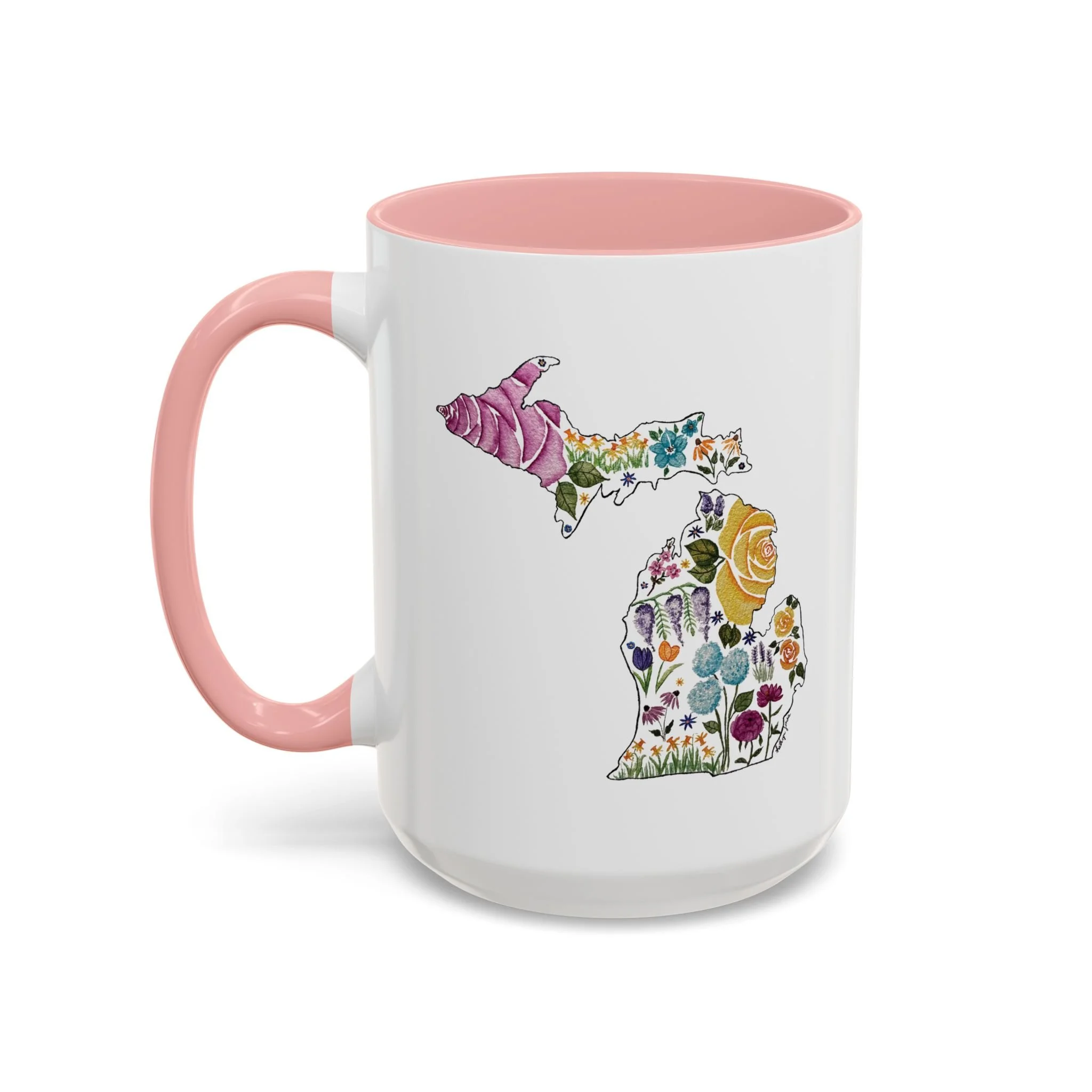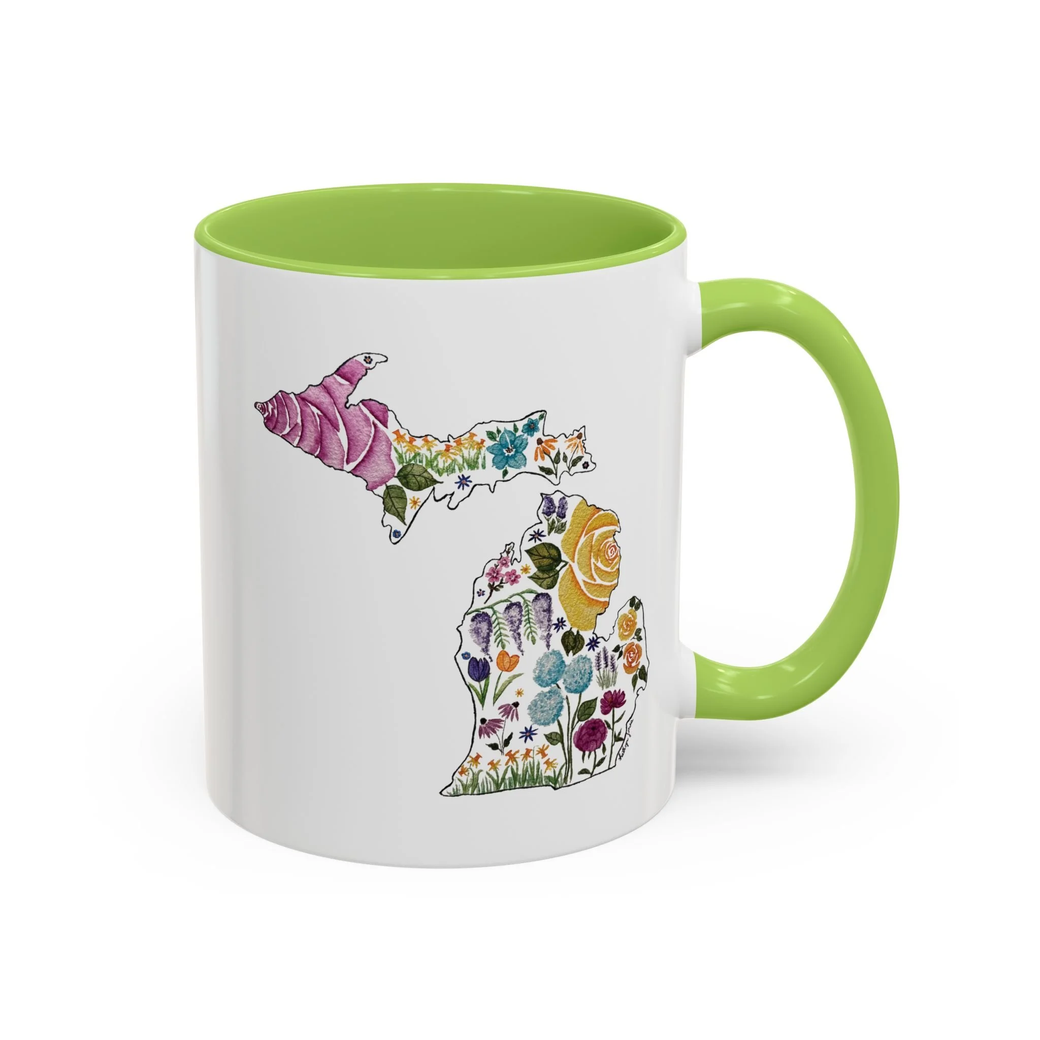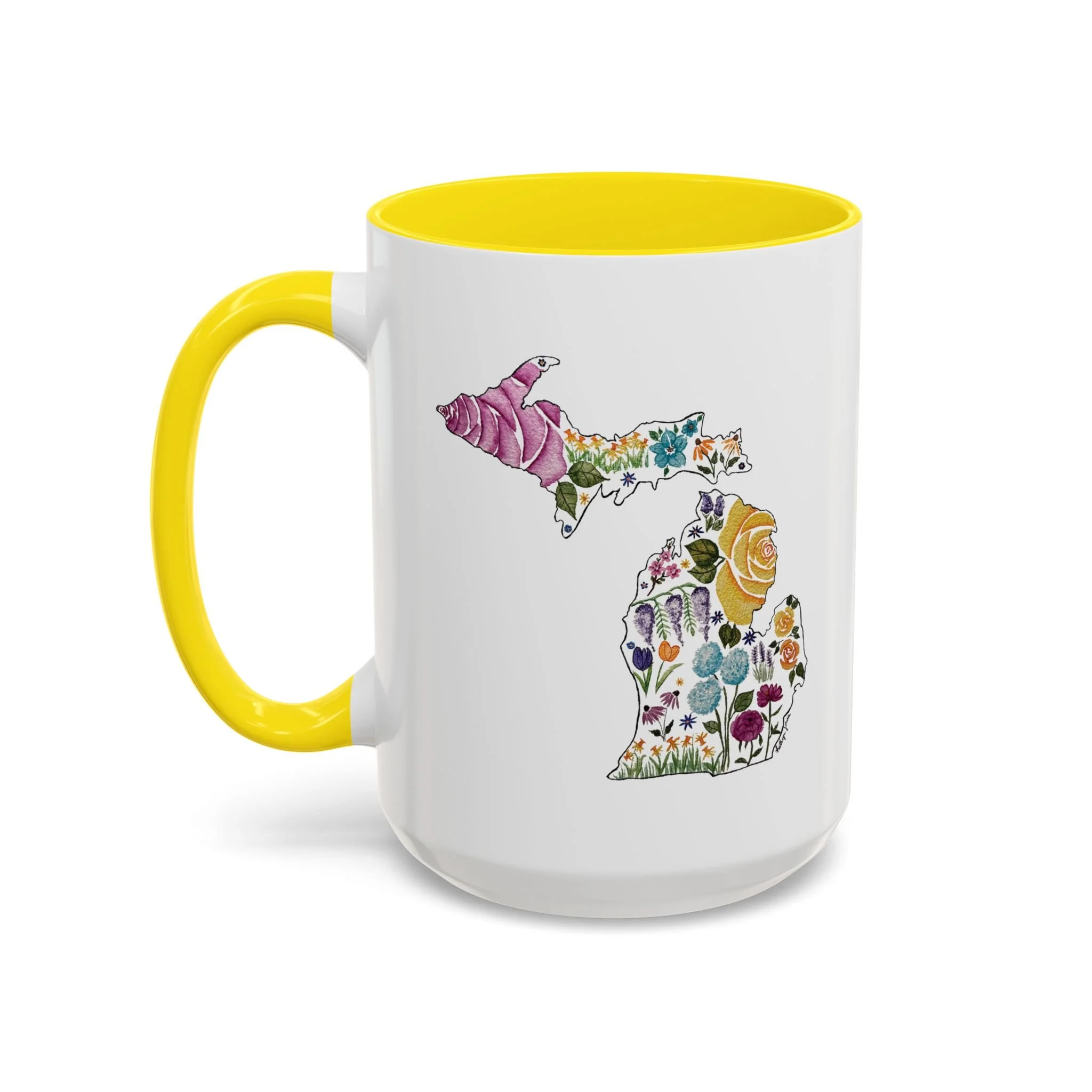 Michigan Floral State Shape Accent Coffee Mug — Botanical Home Decor Tea Cup (11/15 oz)