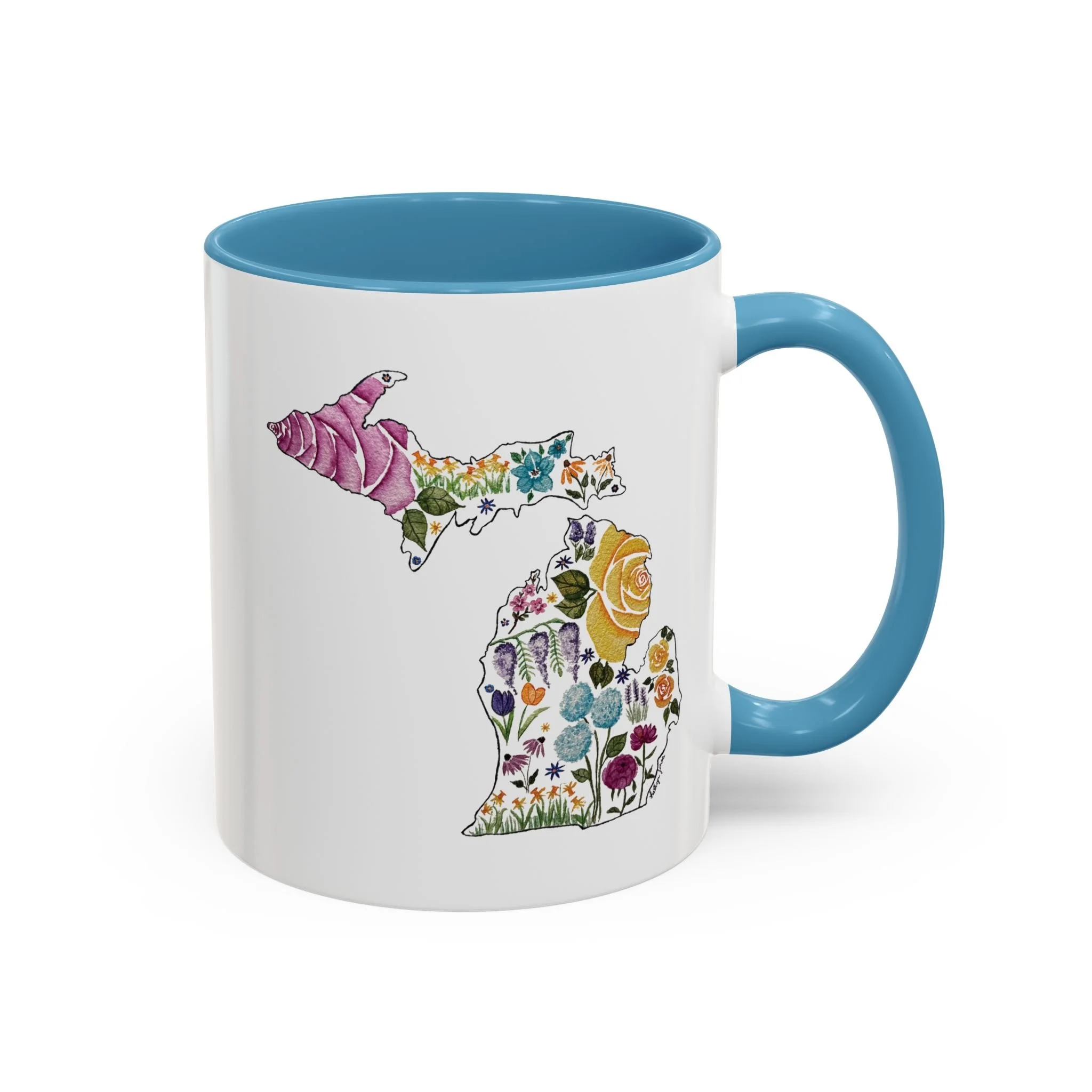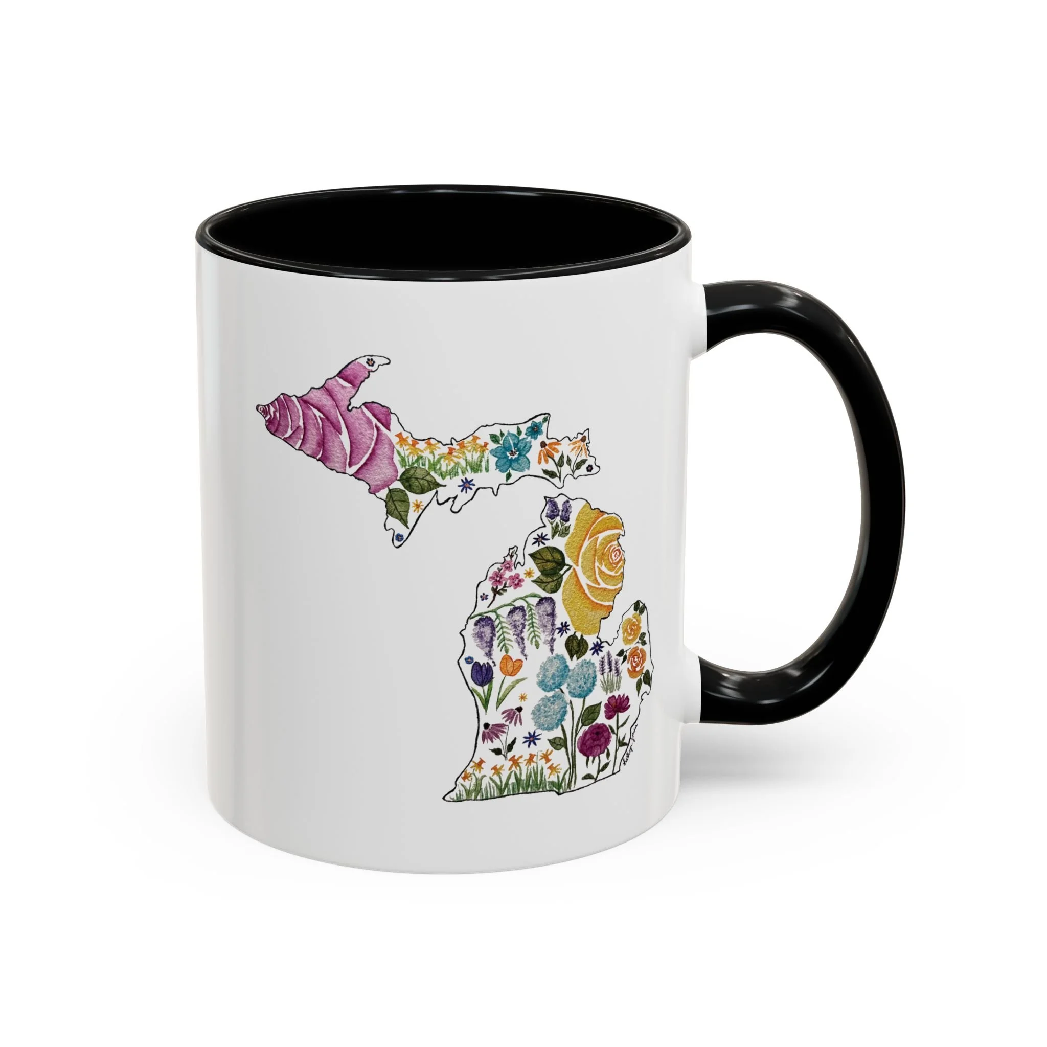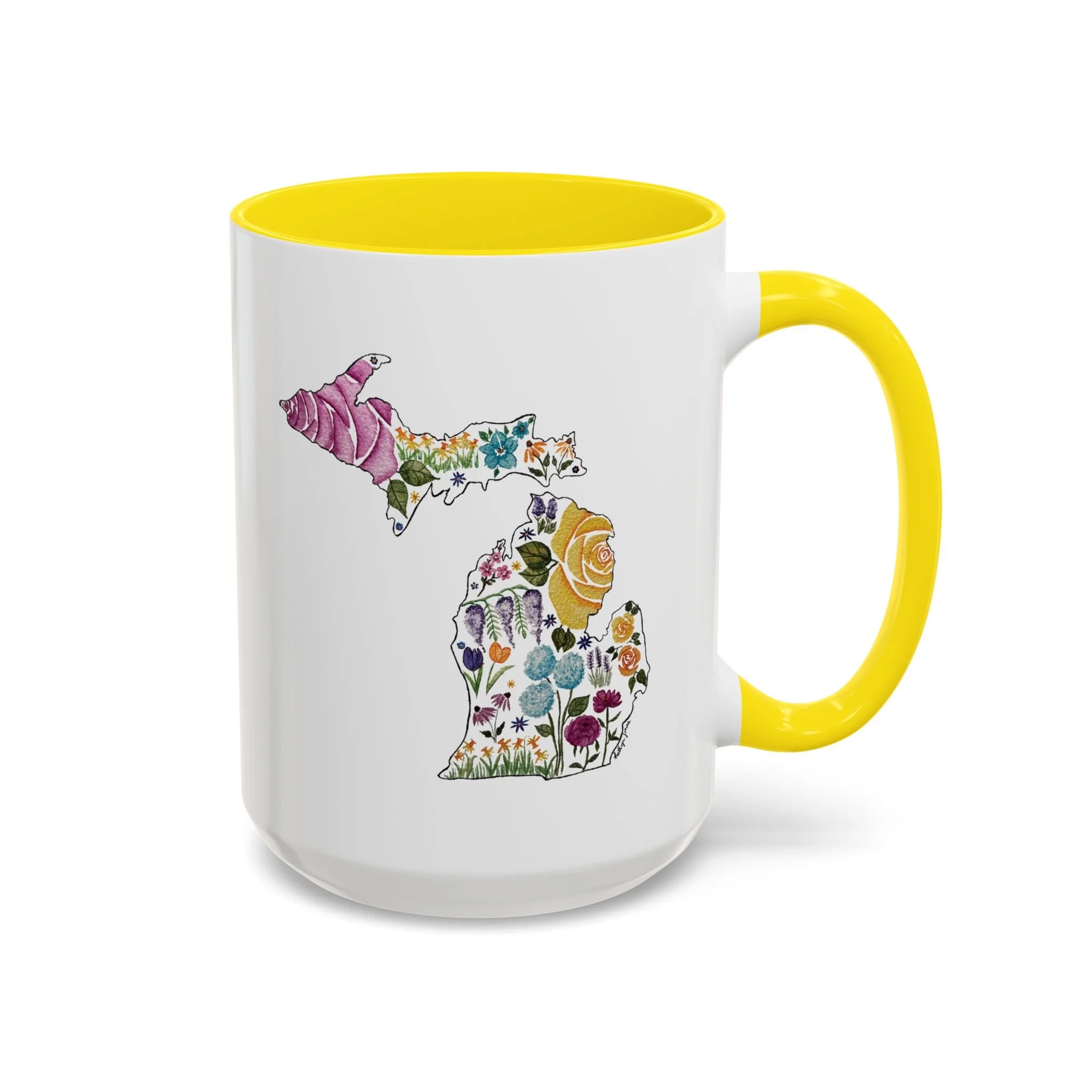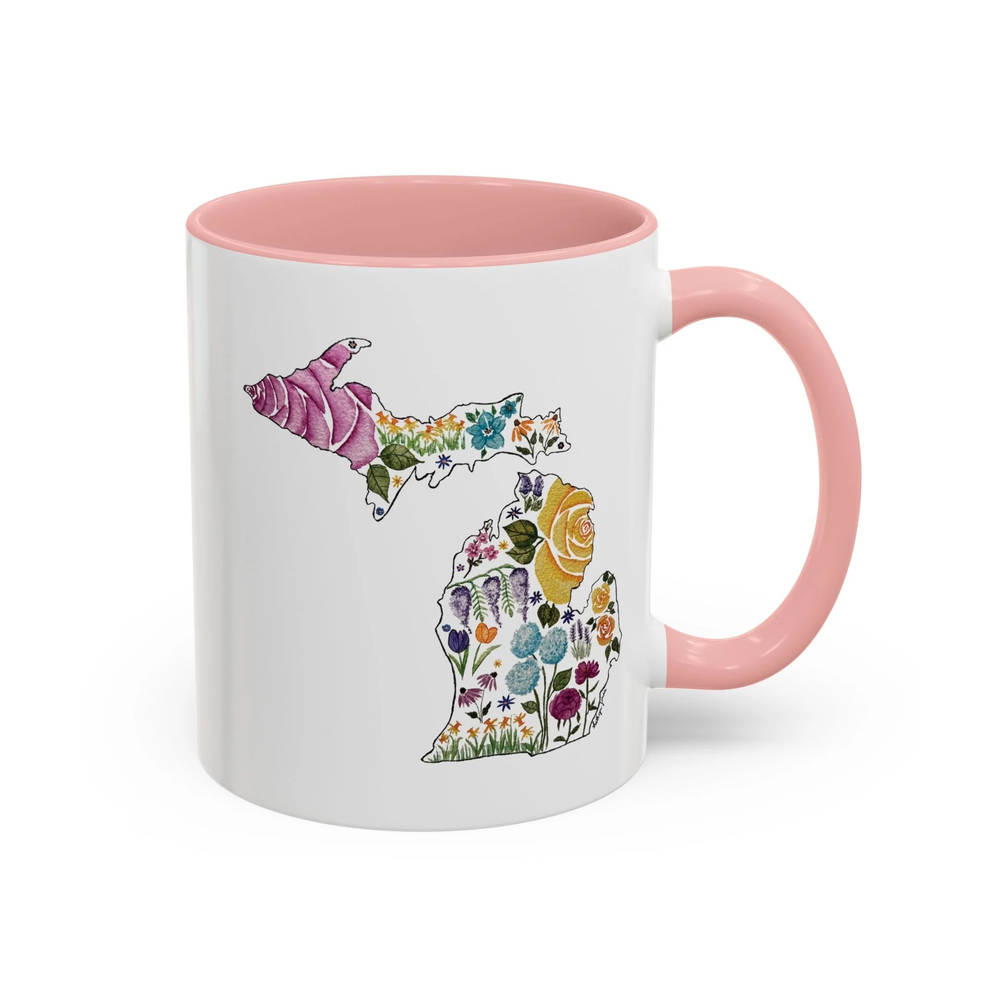 Michigan Floral State Shape Accent Coffee Mug — Botanical Home Decor Tea Cup (11/15 oz)