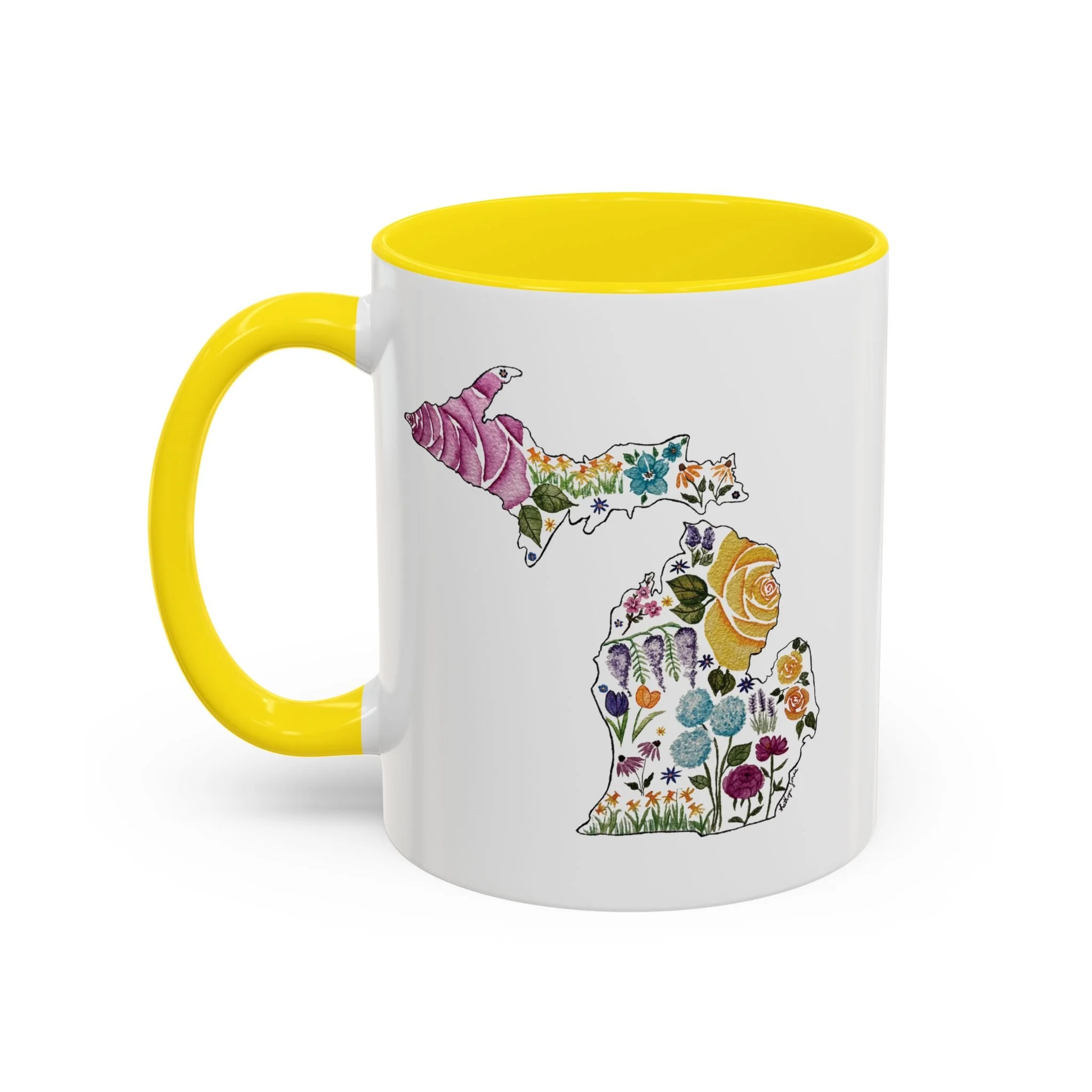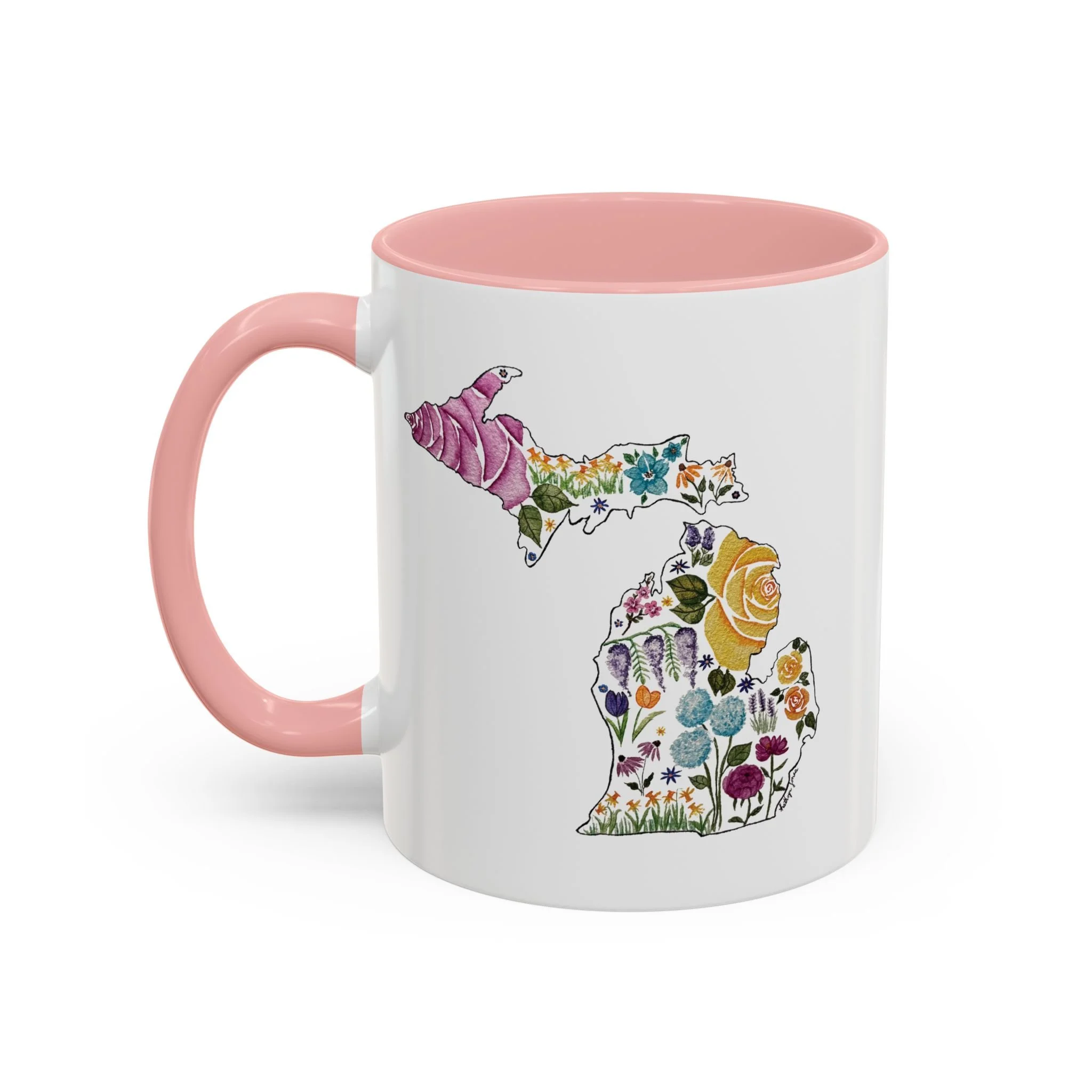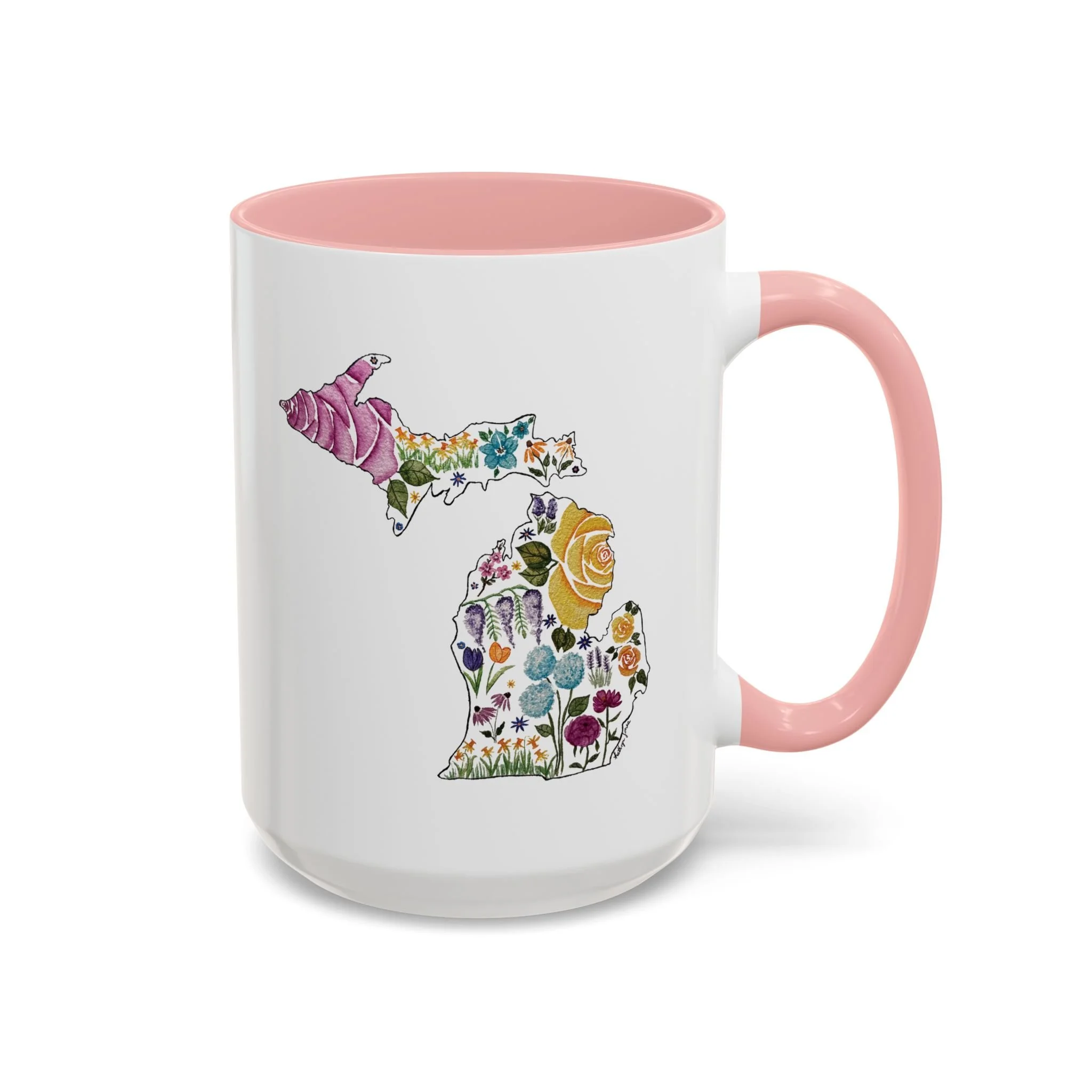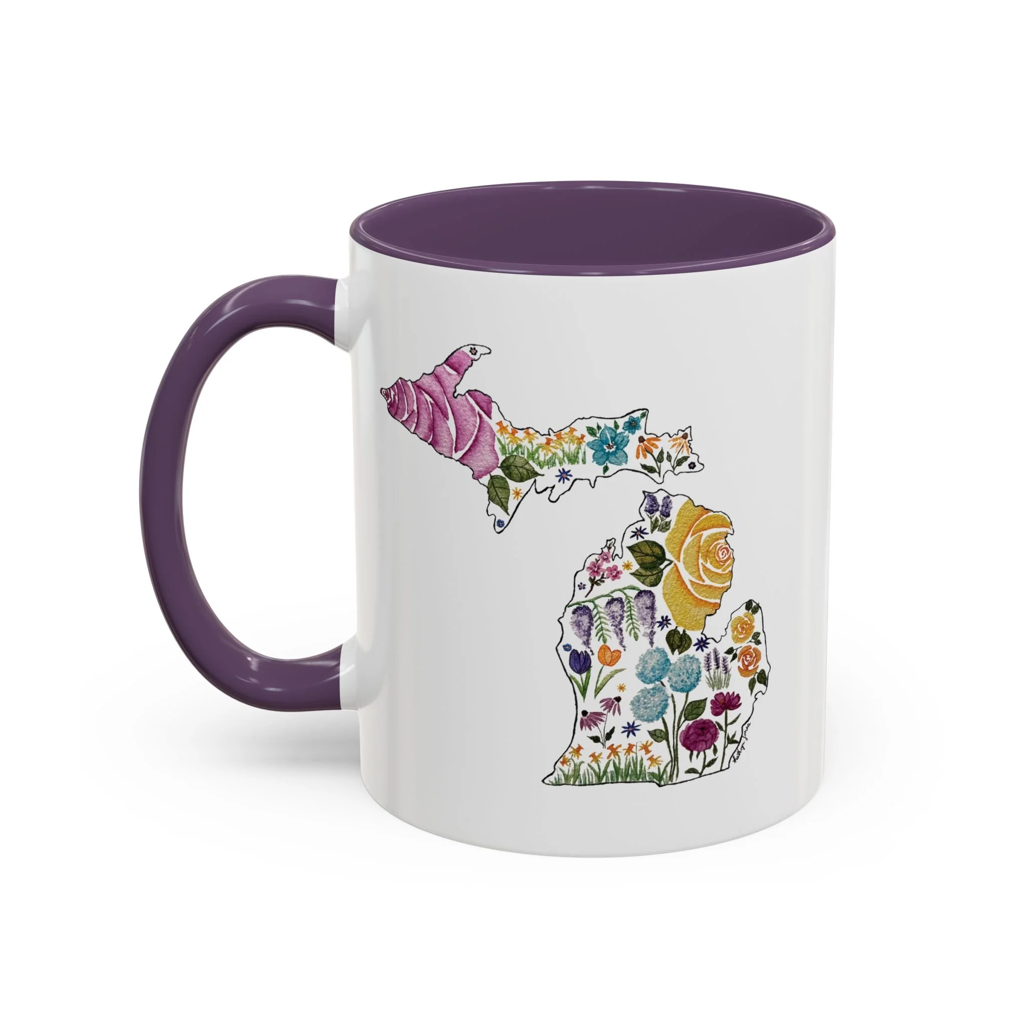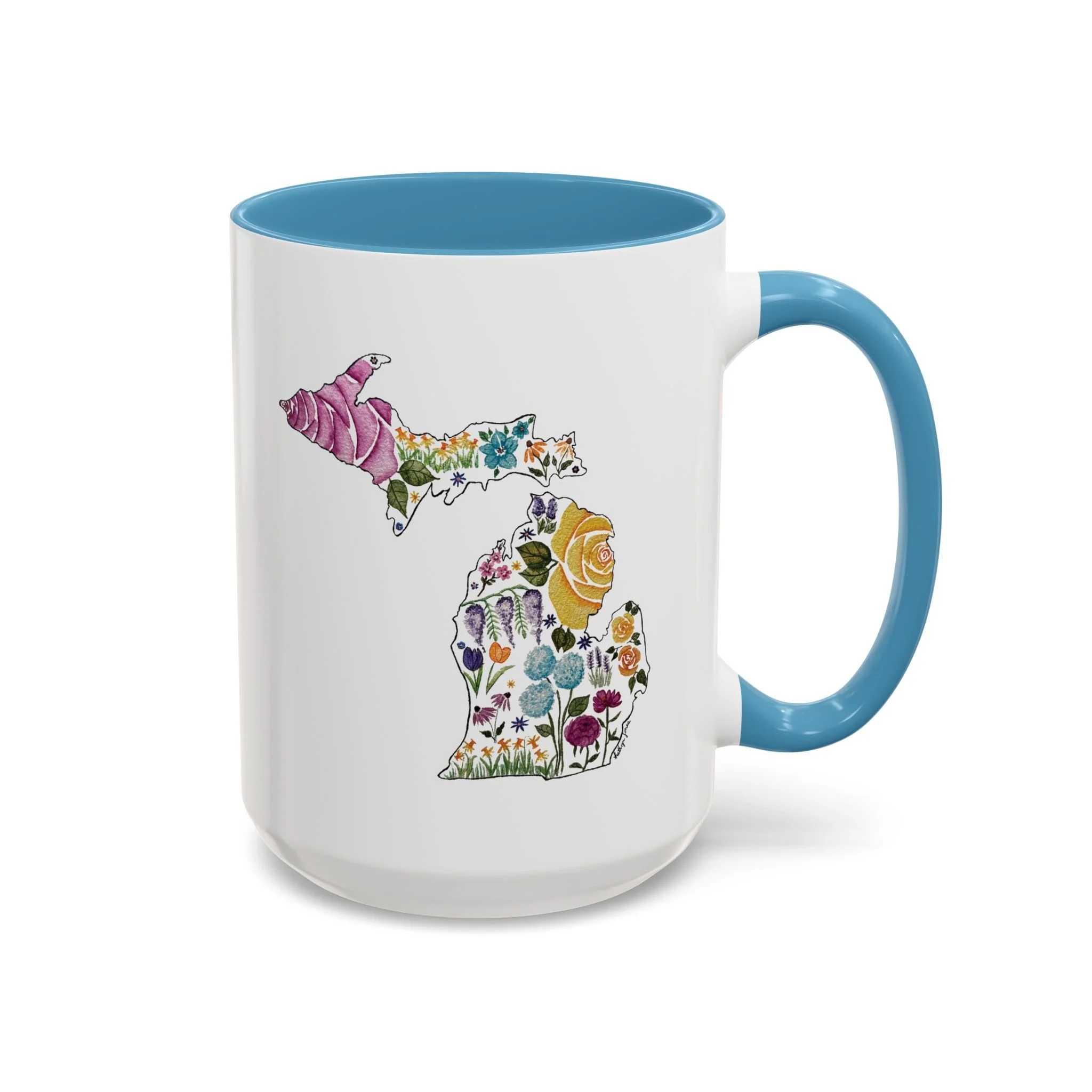 Michigan Floral State Shape Accent Coffee Mug — Botanical Home Decor Tea Cup (11/15 oz)