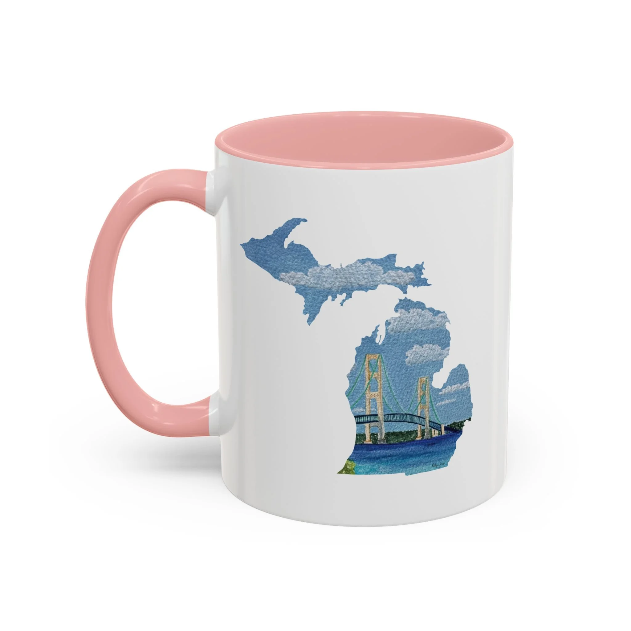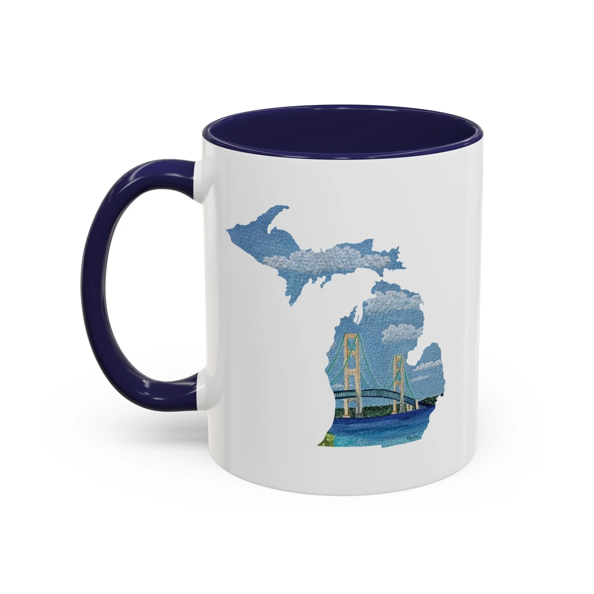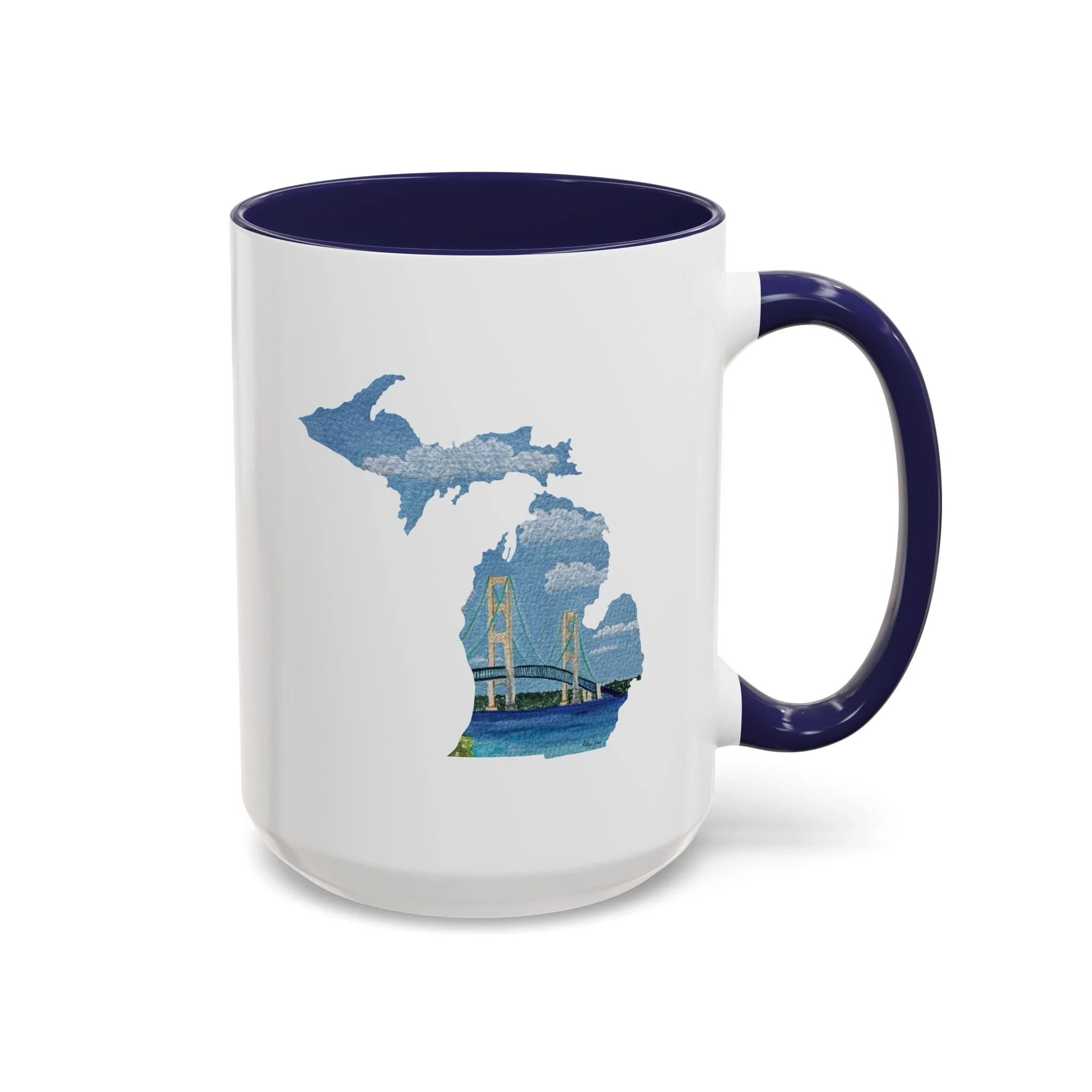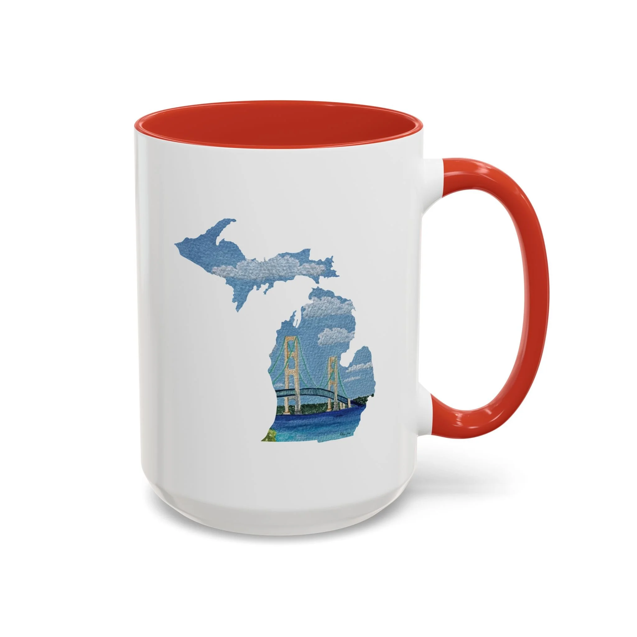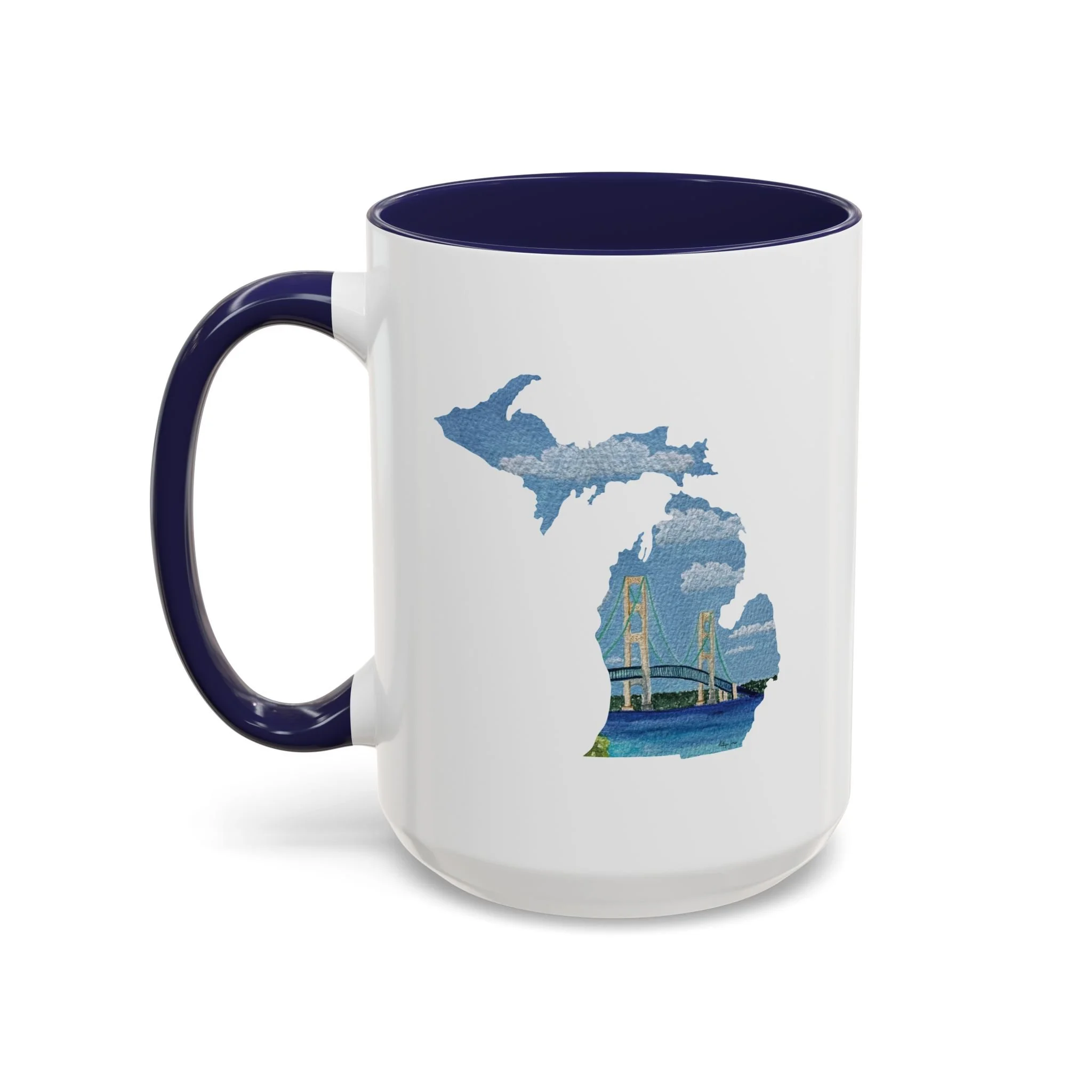 Michigan Floral State Shape Accent Coffee Mug — Botanical Home Decor Tea Cup (11/15 oz)