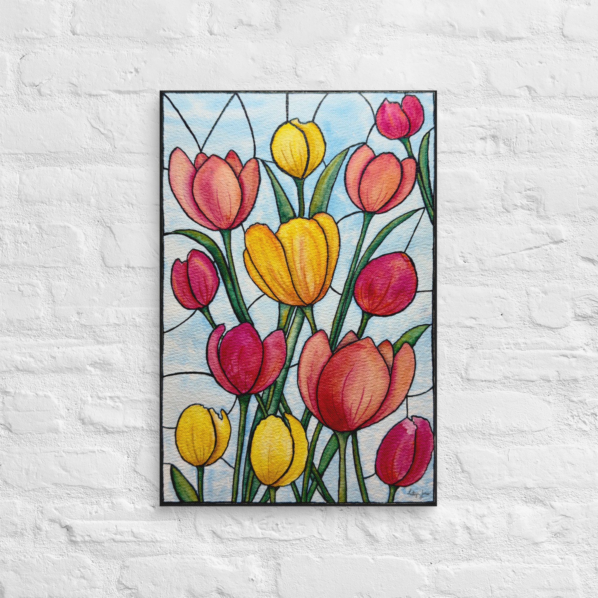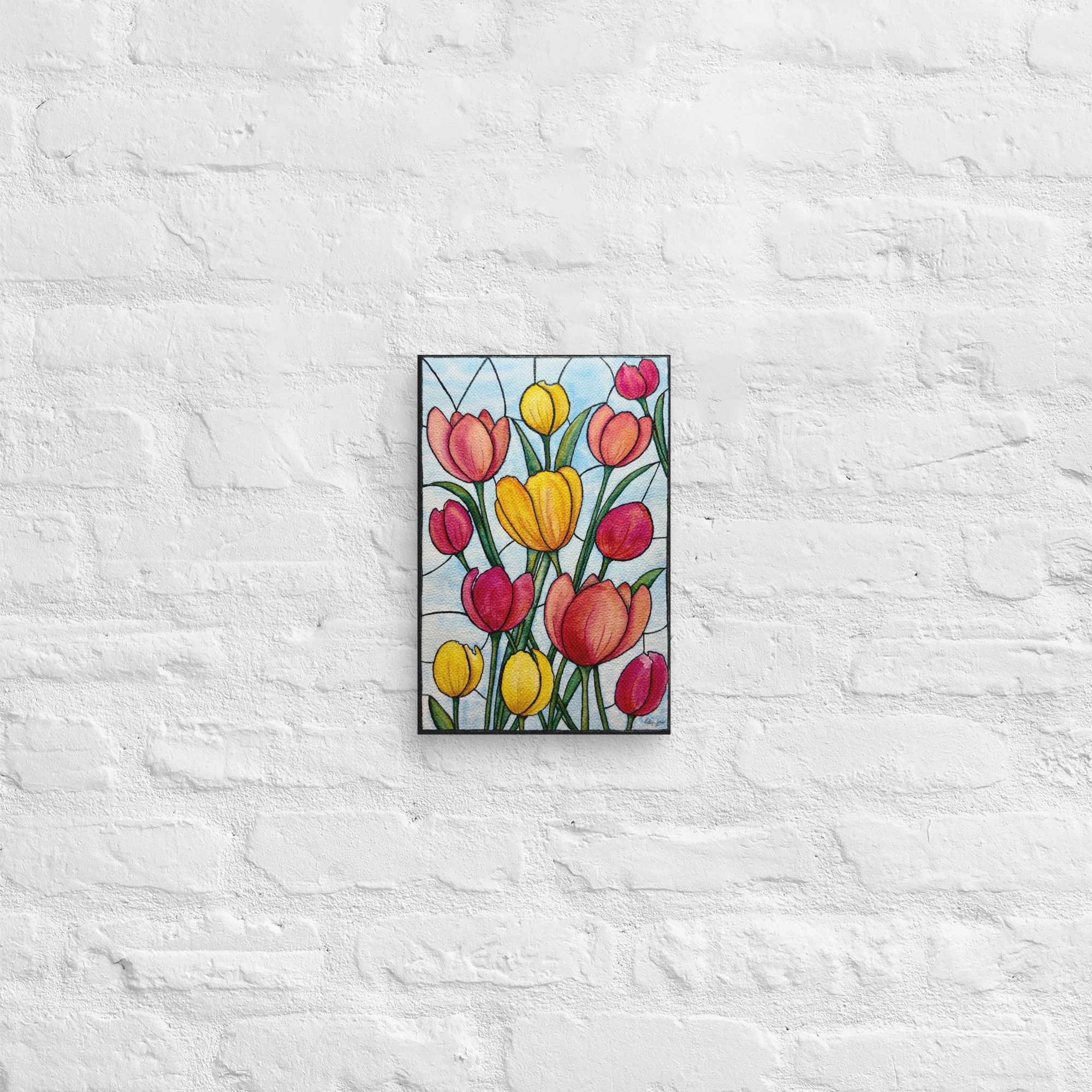 Stained Glass Tulips in Watercolor - Printed on Canvas